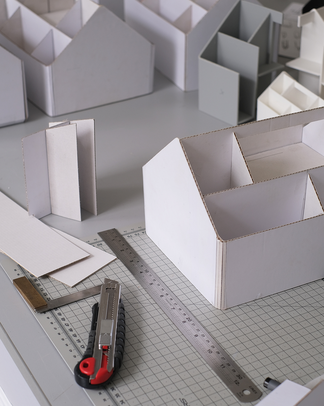 Taking cue from the classic toolboxes he would use in his brief career as a carpenter, Thomas Bentzen refined the archetypal shape into something that feels both familiar and delightfully tongue-in-cheek. The idea behind it came to be as he was reviewing his cardboard models: