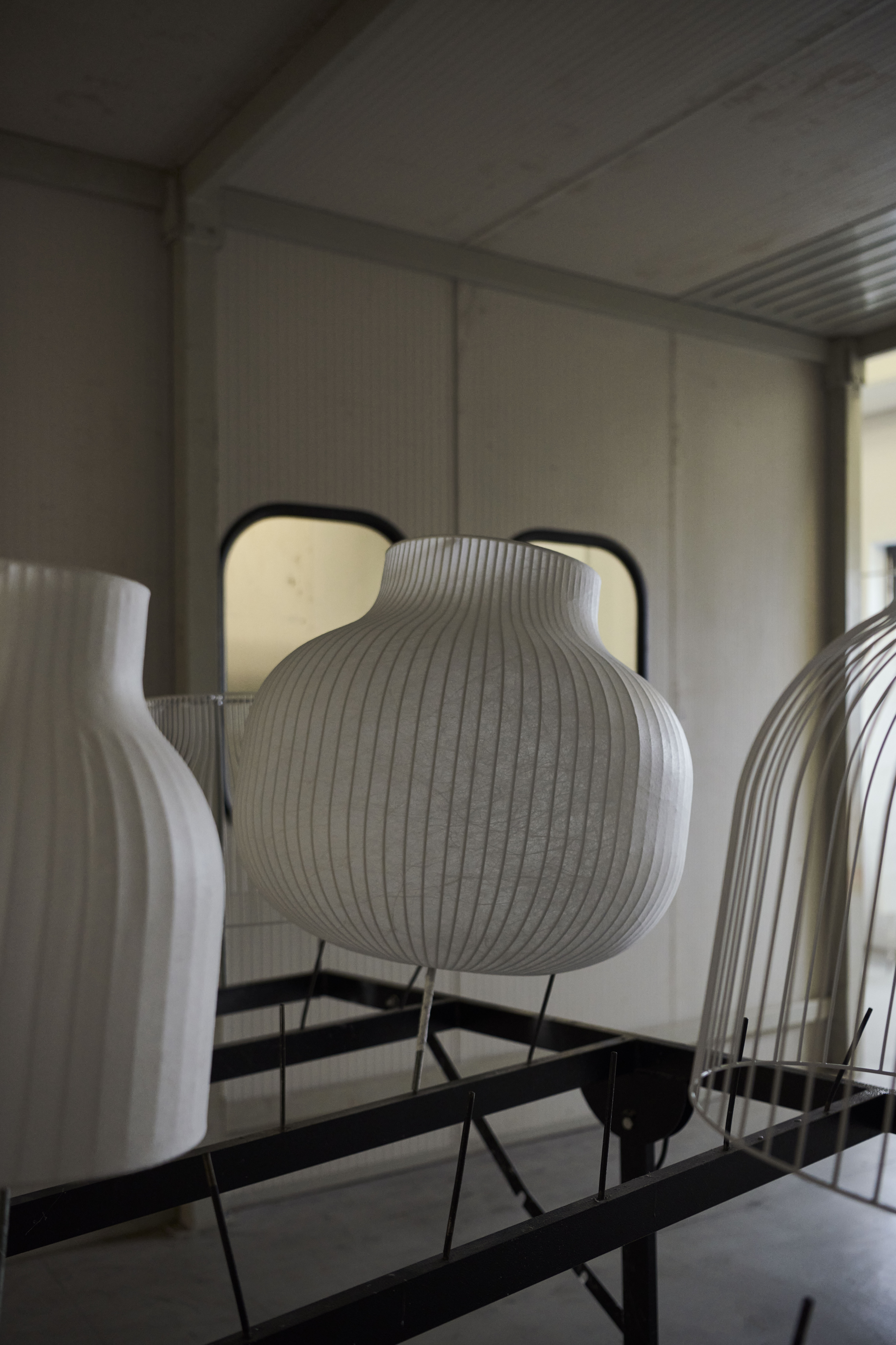 The Cocoon material was first used to make lamps and smaller objects in the 1960s through a mechanical process that made it possible to spin a steel grid in the material, much like a silkworm spins a cocoon of raw silk around itself.