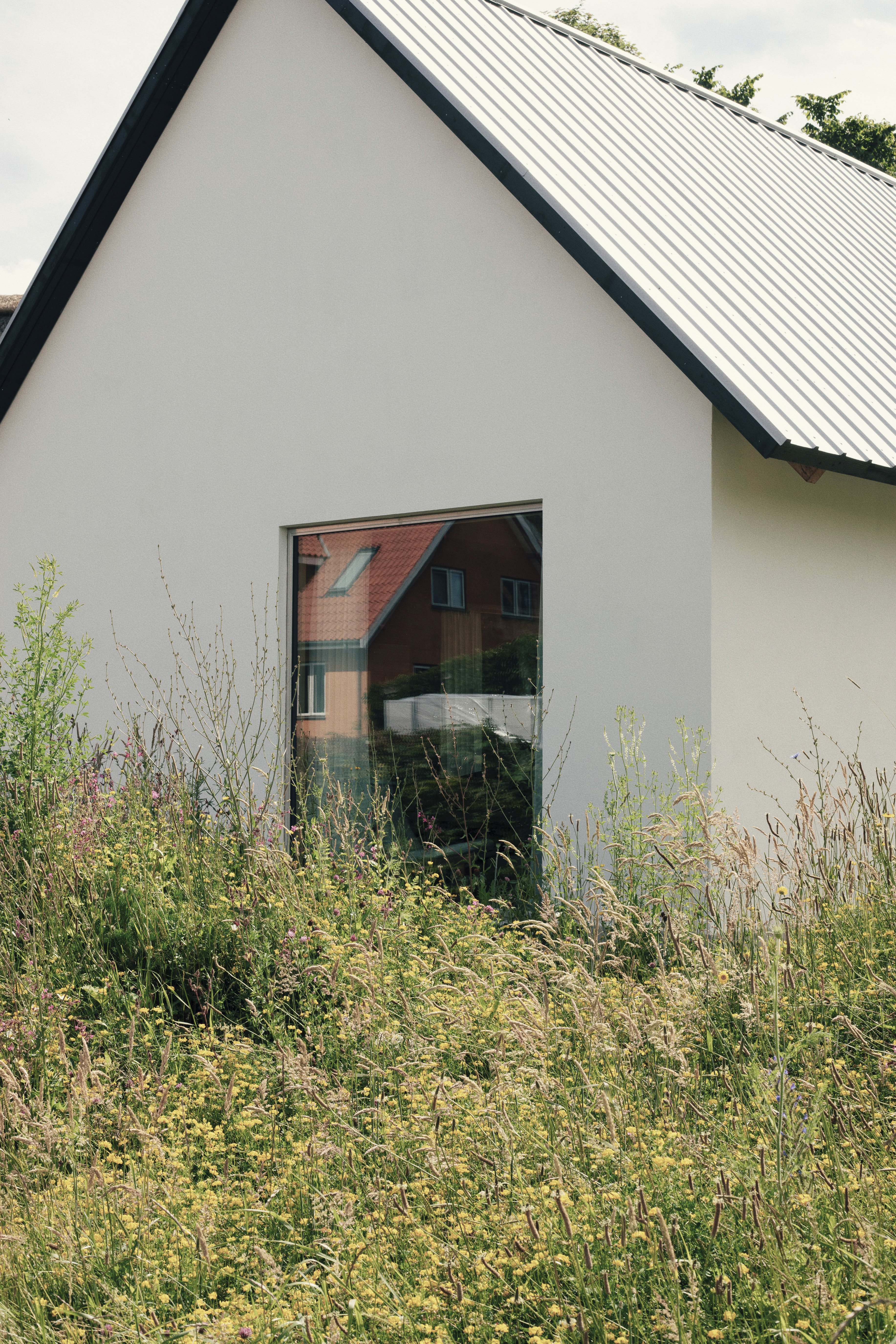 That perspective is embedded in their house. A timber load-bearing structure supports walls made from hemp bricks combined with clay and chalk — materials selected not only for their low impact, but for how they perform and age. They regulate humidity, store CO₂, and create a balanced indoor climate throughout the year. Drawing on the village’s historic buildings, the design reinterprets the classic half-timbered form with restraint, resulting in a home grounded in its surroundings and designed to endure across generations.