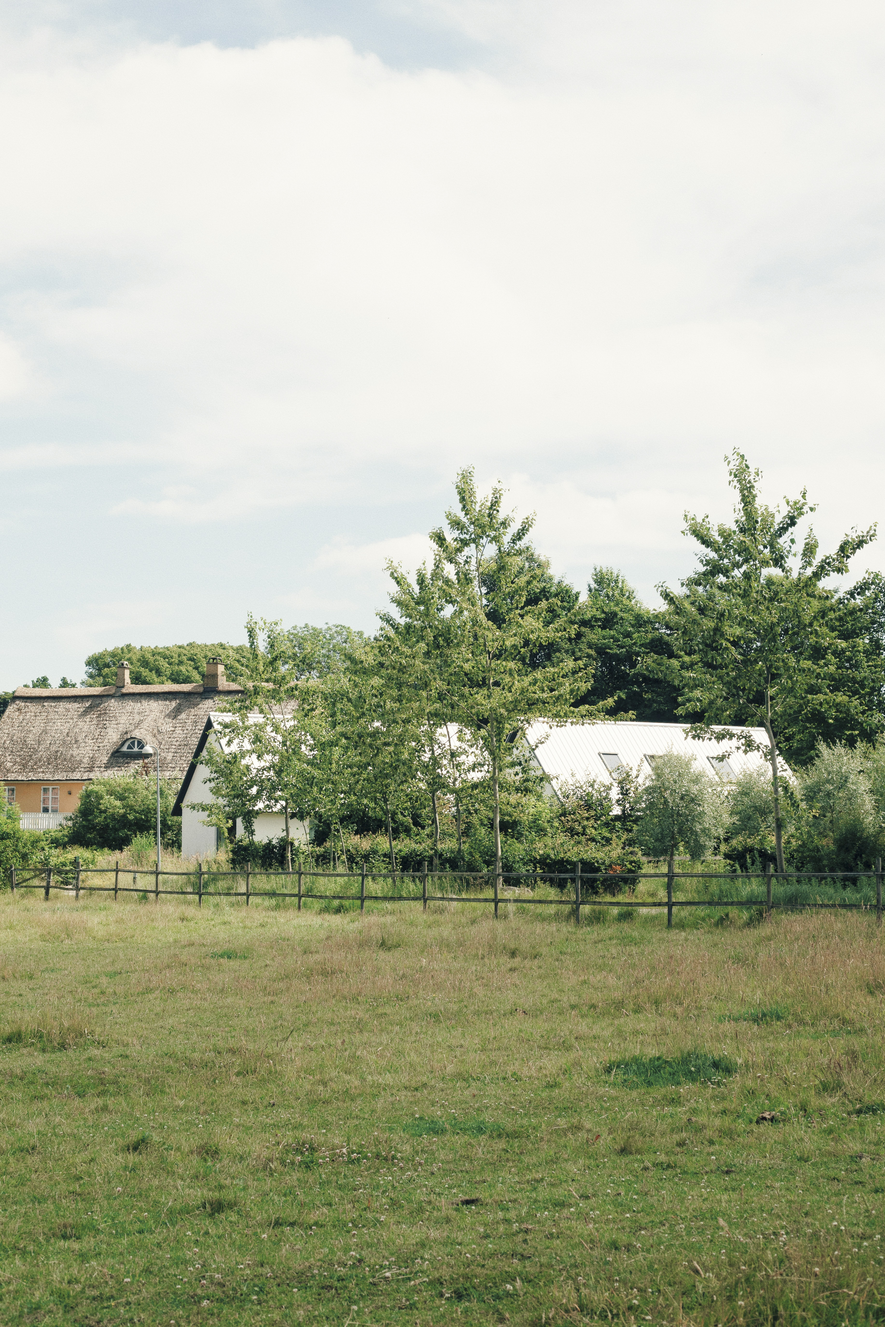 We meet Casper and Alexandra at the end of June, on the cusp of summer. There’s a sense of pause in the air, holidays approaching, routines loosening. Karlebo, the village they call home, is small and close-knit: one daycare, a school that runs to fifth grade, fields stretching wide, horses grazing in the distance. It feels almost rural, yet Copenhagen is only twenty minutes away. Cyclists pass through regularly, tracing the roads between forest and open land on their way toward the coast. The landscape shapes both the pace of the village and the life they have built here.
