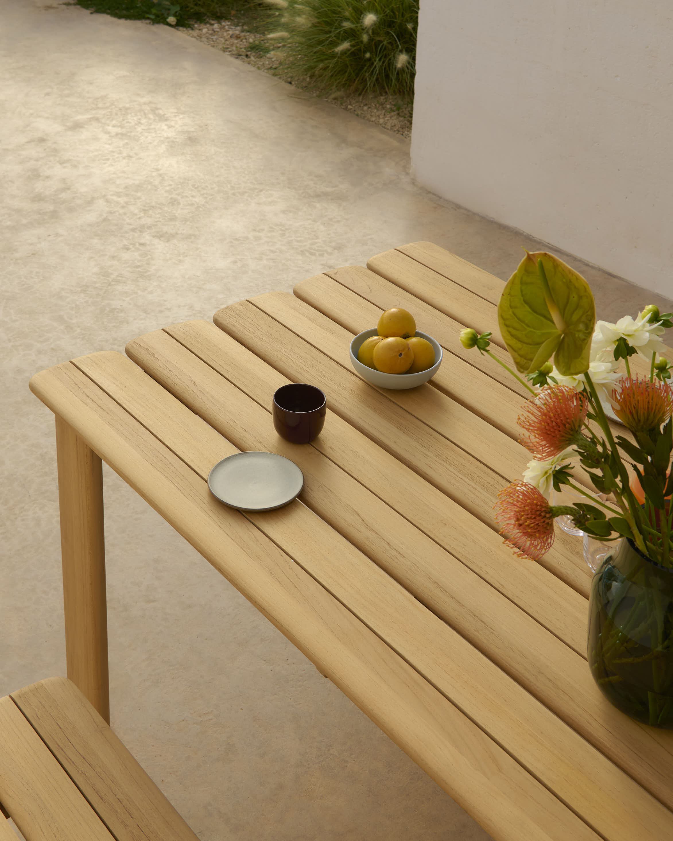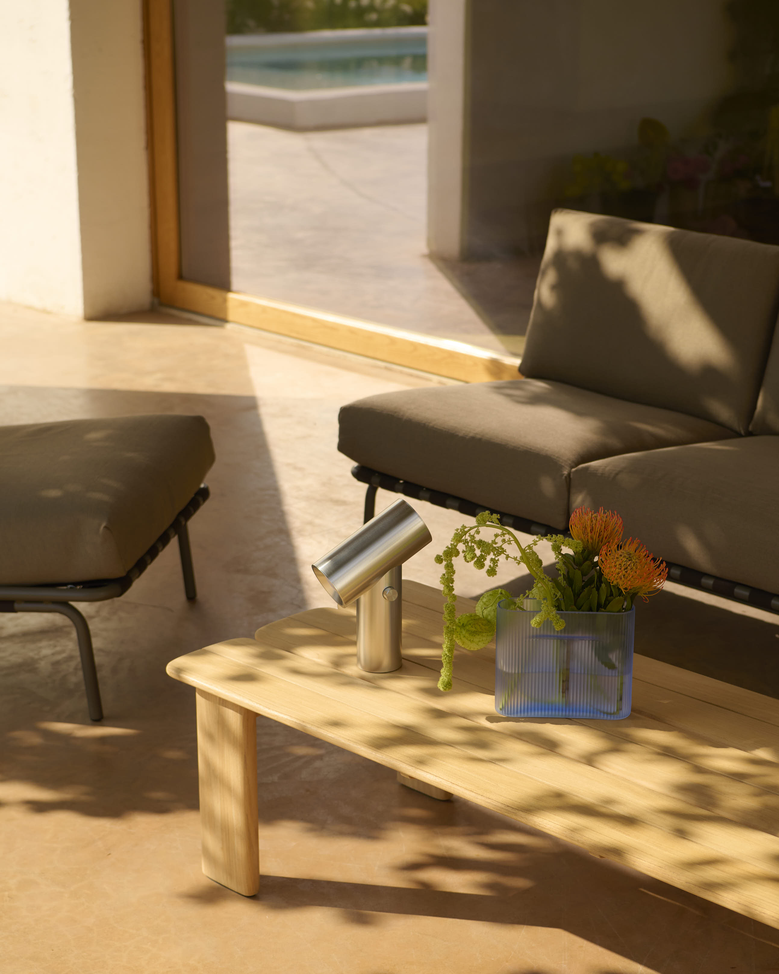 The series is crafted from high-quality, solid teak — a hardwood well-suited to outdoor use. As a natural material, teak displays variations in grain and tone that make each piece unique. Made using FSC™-certified (FSC-C028824) teak, the wood will develop a silver-grey patina when left untreated, or can be maintained with periodic oiling for a deeper, warmer tone.
