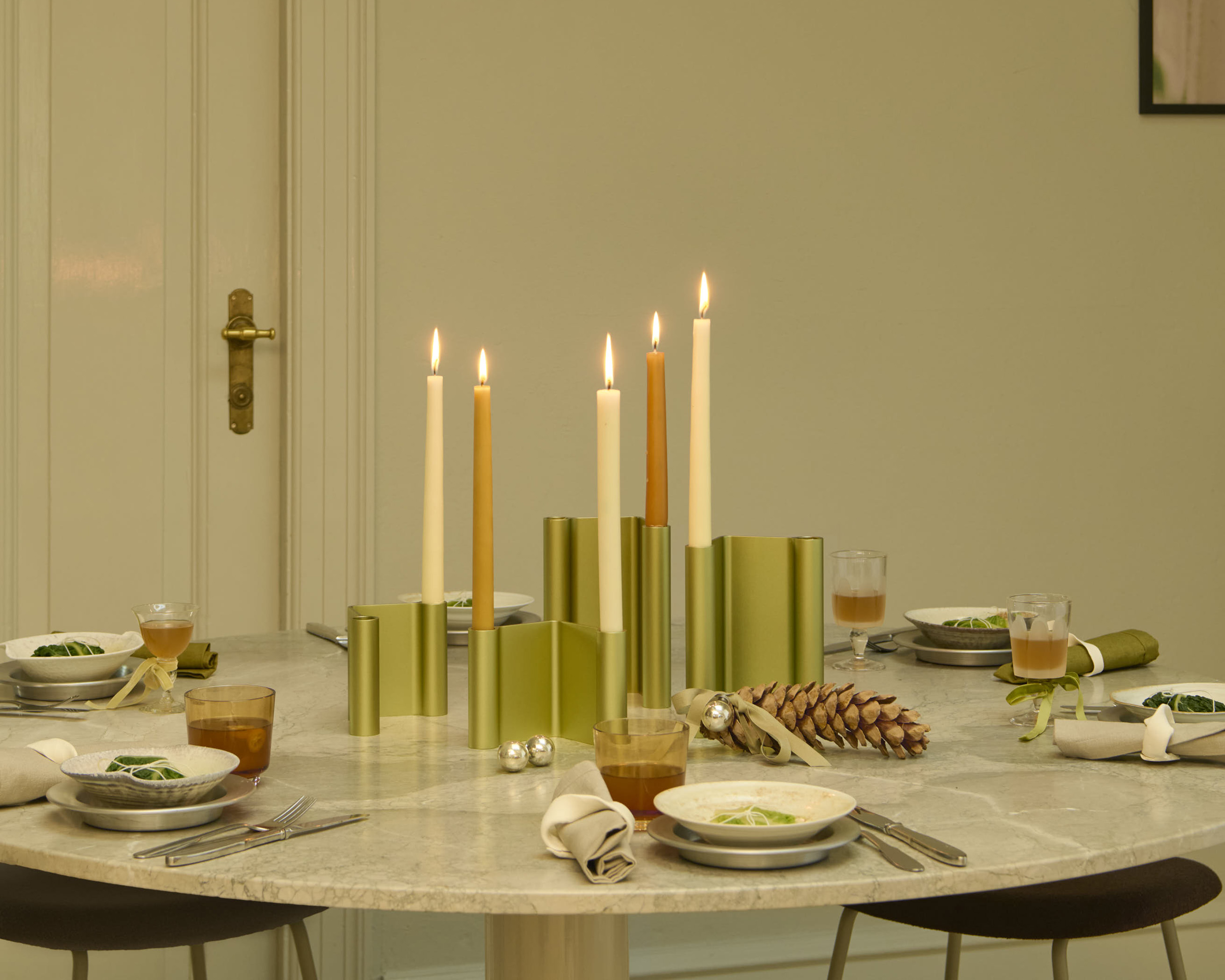 Lars Tornøe “I wanted to challenge the traditional, static layout of four candles. By splitting it into two, the form becomes more expressive. People can use it differently every time.”
