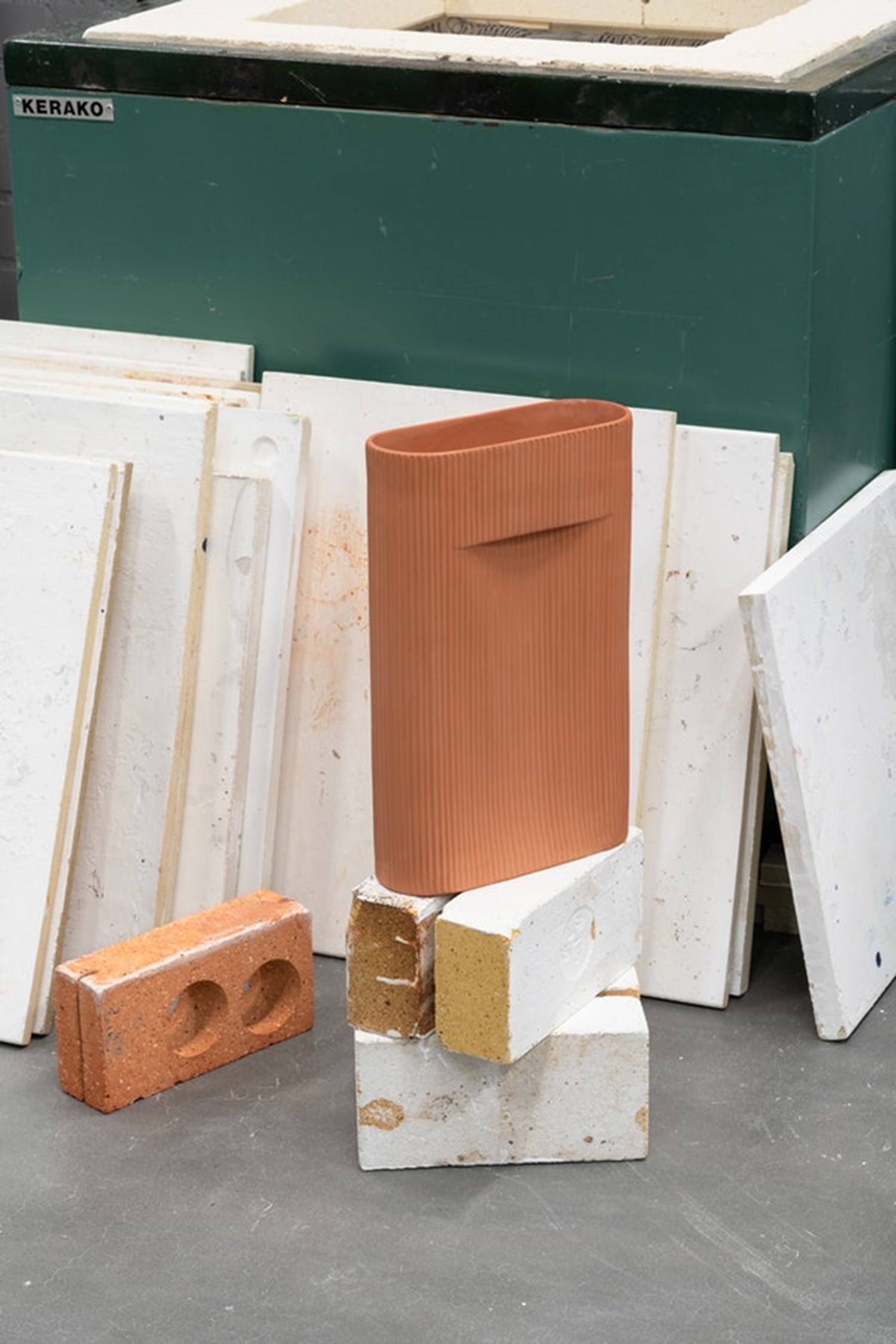 “We were travelling quite a bit and did sketches of architectural details in the cities that we were visiting. The form of the design is roughly based on the façade of a utility structure we saw in Paris—we were inspired by the structure of its doorway that was set deeper from the wall, as if it had been cut and pushed inside, creating both a shadow and a protected alcove,” says the duo when asked about their inspiration for the Ridge Vase and add: “We wanted the design to be simple with detailing that would give it an architectural expression, like a scale model of a monumental structure.”