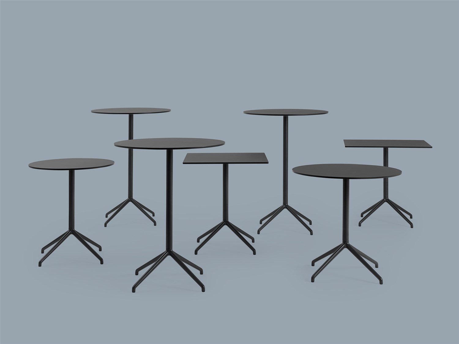 “Our idea for the Still Café Table was to create a design with an apparent function that would fit intuitively into any space without making much visual noise. With its elegant four-legged base across various heights, the design is stripped to its essentials, complemented by the angled edges of its table top”, tells Iskos-Berlin, a Copenhagen-based design duo that has made waves within furniture, industrial and graphic design with products being exhibited at numerous museums around the world, including MoMa and the Danish Design Museum.