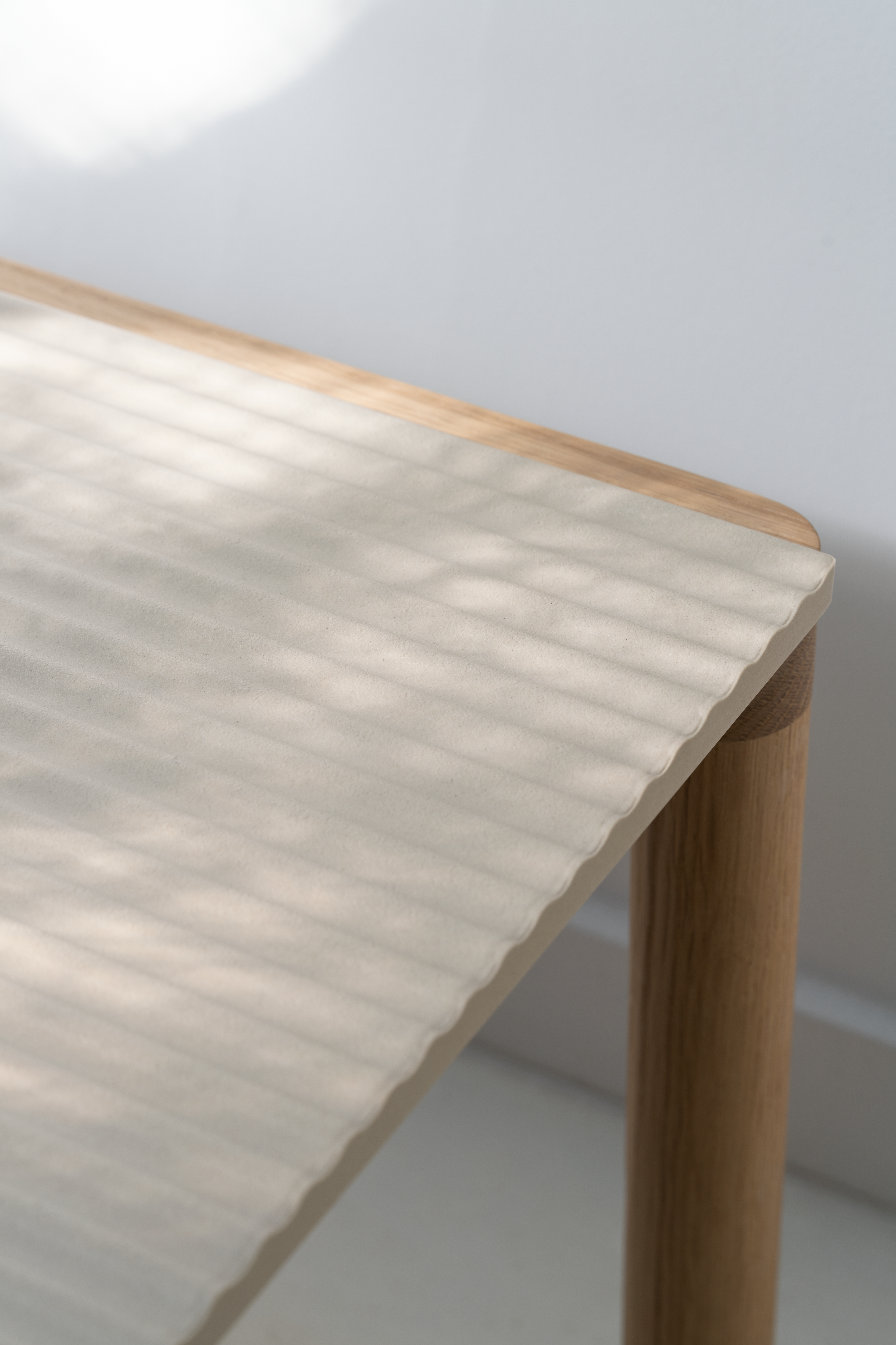 "Adding the wavy texture to one of them, we really wanted to make it look interesting, to enhance and use the qualities of the material — to show them off. It gives that taste of…something different, a surface that interacts with light and shadow, and welcomes touch or even to put your pencil in its ridges"