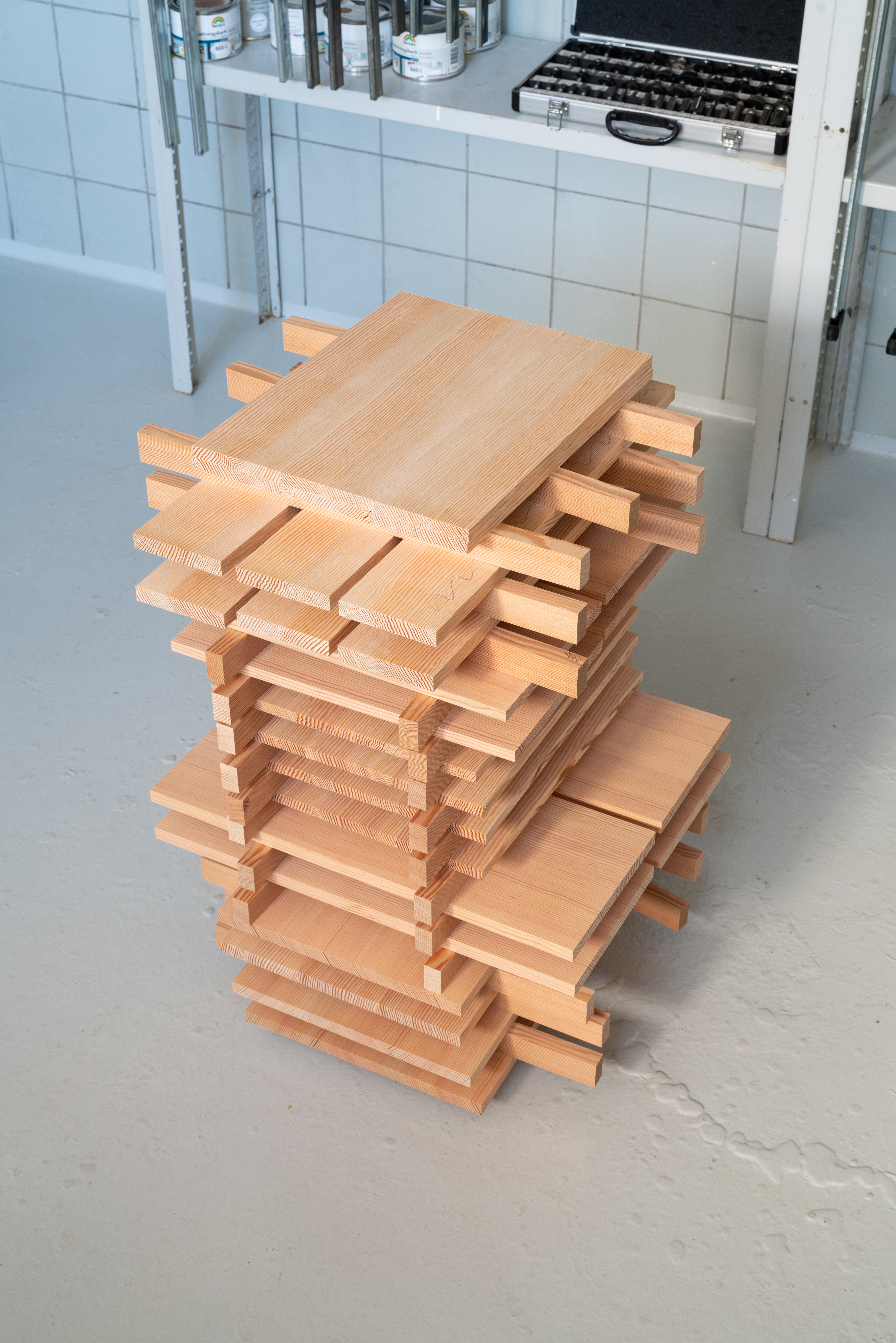 When viewing the duo’s body of work at a glance, one is instantaneously struck by a sense of simplicity yet in a highly experimental and advanced way, paired with an inherent allure for traditional craftsmanship. Speaking on that, Frederik says: “Our work rests highly on practical experimentation that encompasses studies in static principles and tectonic systems that we want to explore from both an artistic and functional perspective. We strive for our work to reflect our curious and playful approach to our craft, often leading to us pushing the static and material properties to the furthest.” Pondering upon how this influences their process, Gustav notes: “As opposed to pursuing a specific function, we instead revolve around the idea of concepts that are at once flexible in their function, scale and context. This makes for work that is cross-disciplinary and touches the areas of small-scale architecture, crafts and design.”