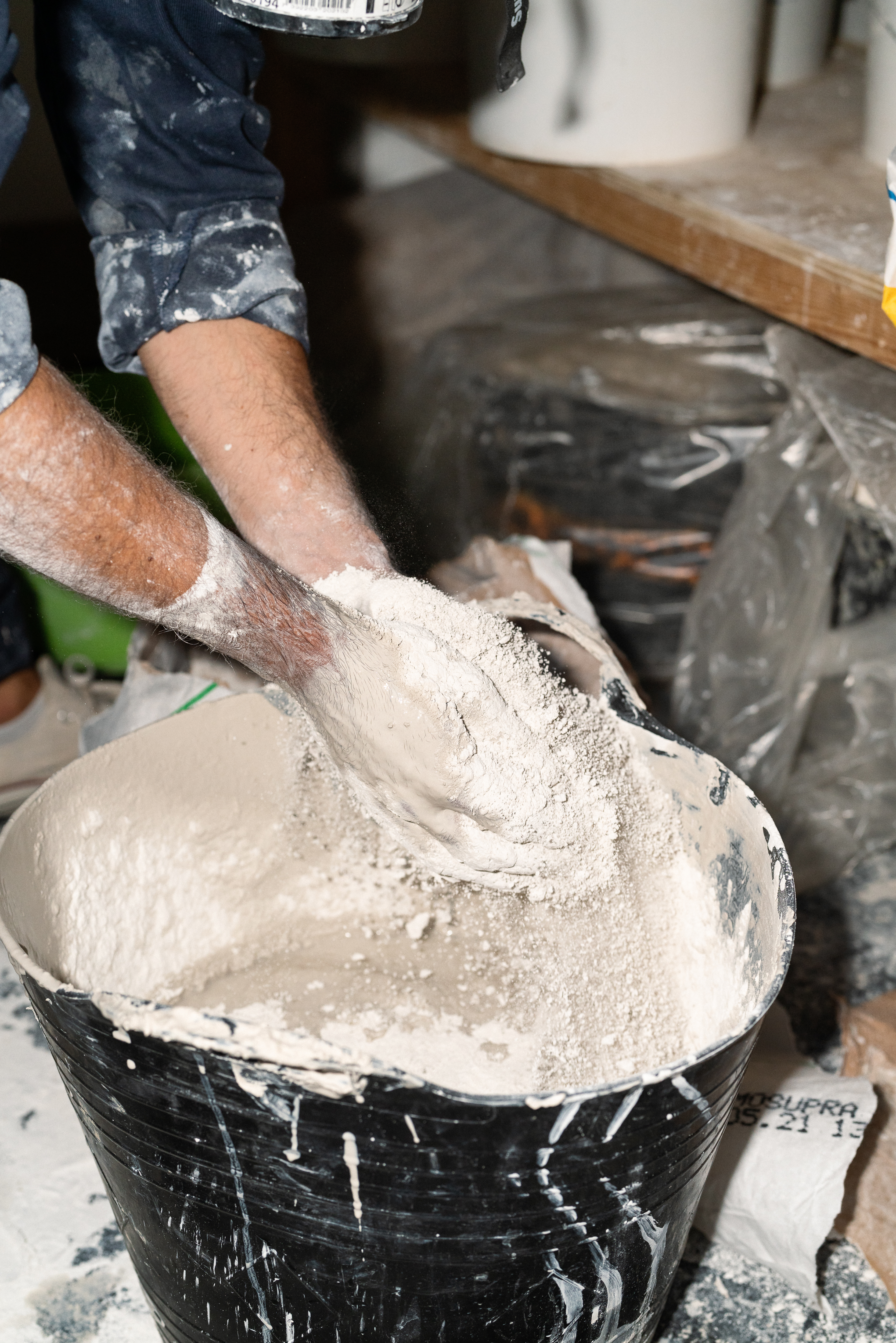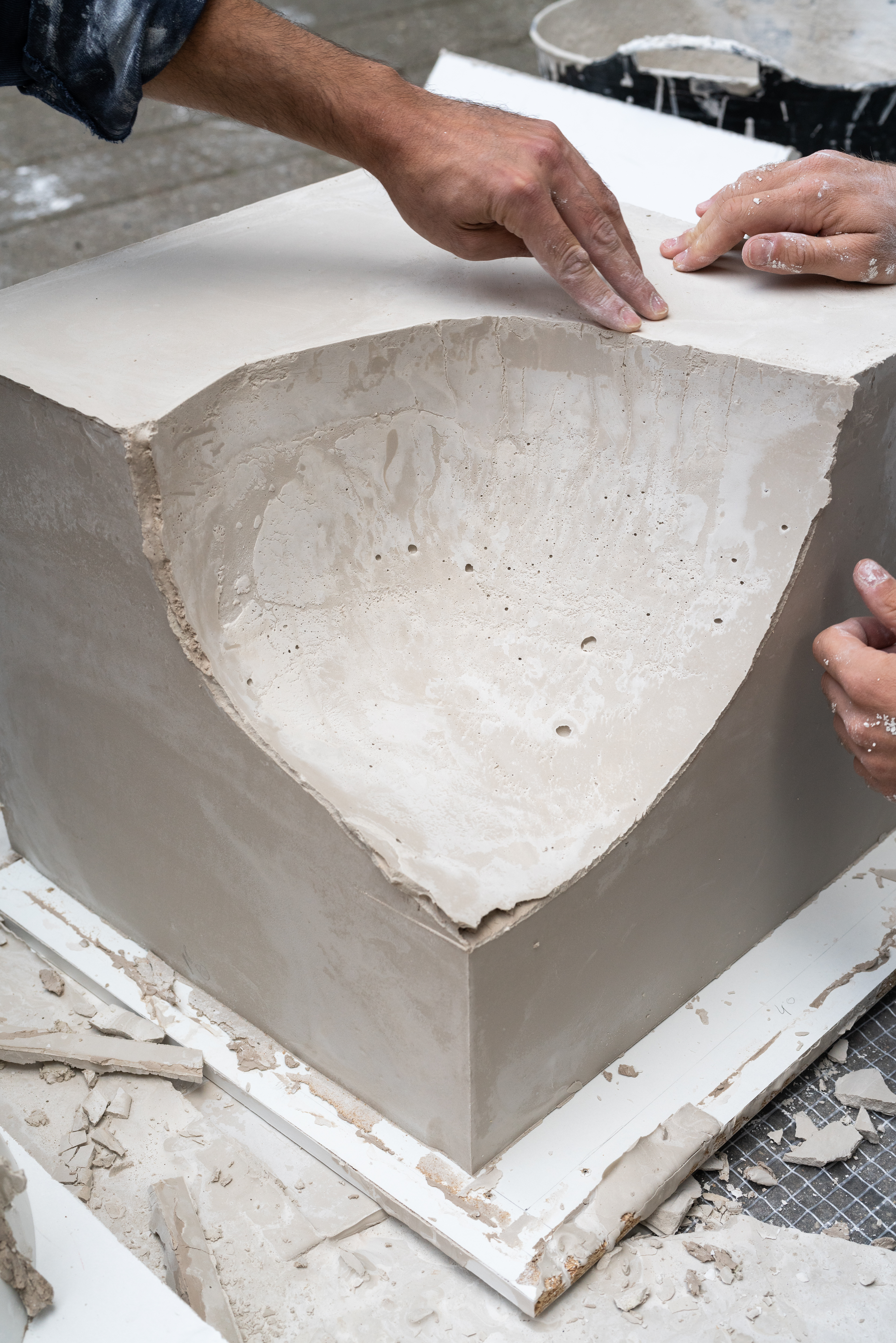 Plaster being poured into the Kink Vase as a means of exploring the negative space within the design.